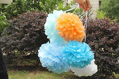 Each package comes with four 10inch ice blue color tissue paper pom poms and 2pcs 16inch ice blue tissue paper fans. Color as you can see in the picture.