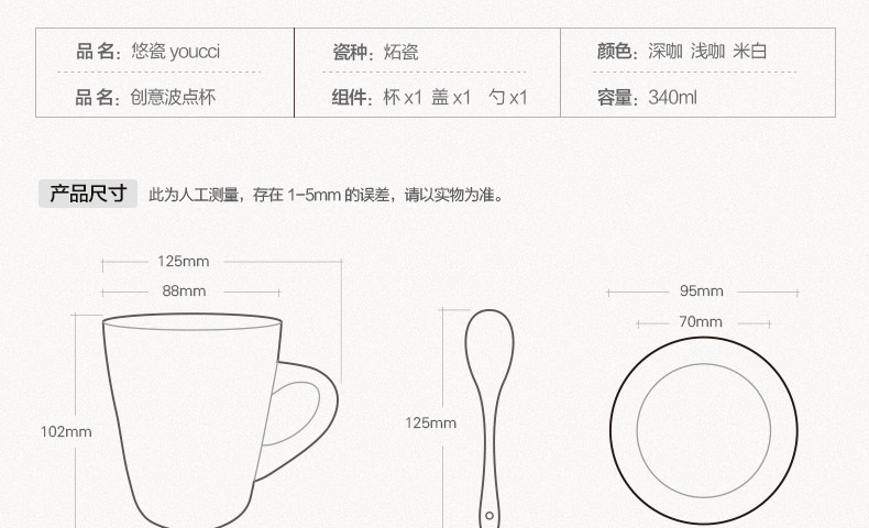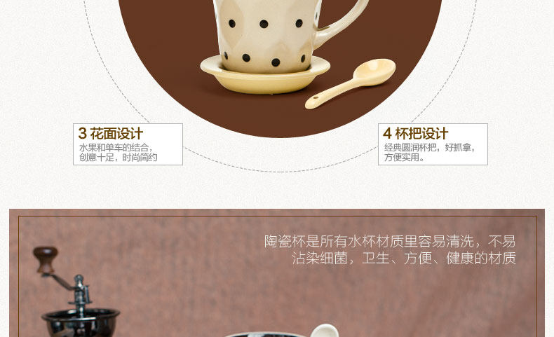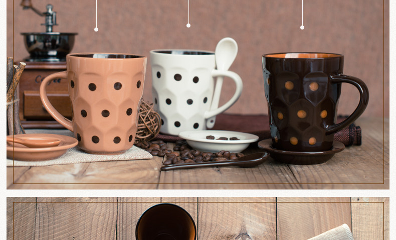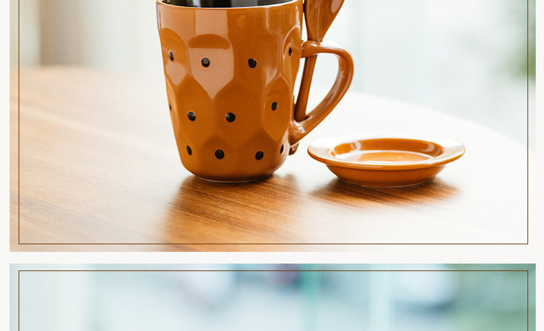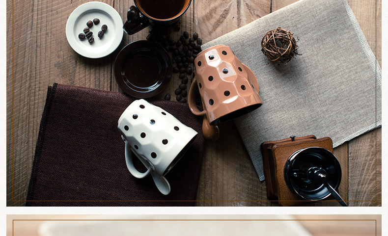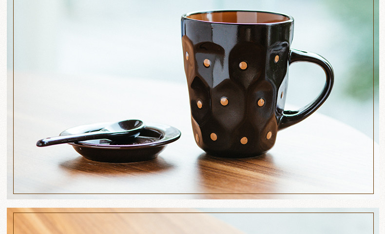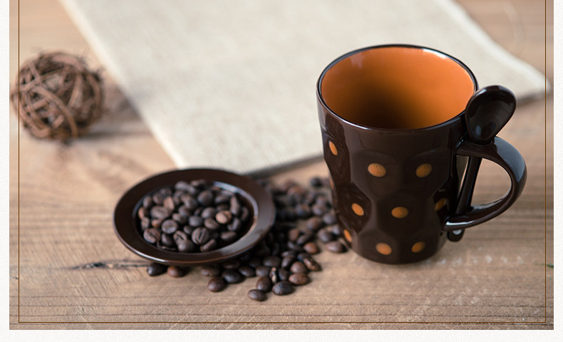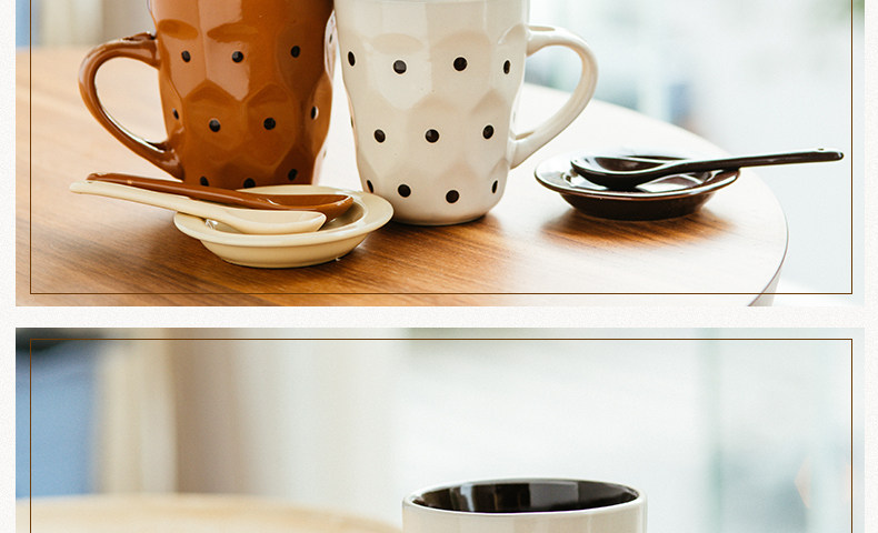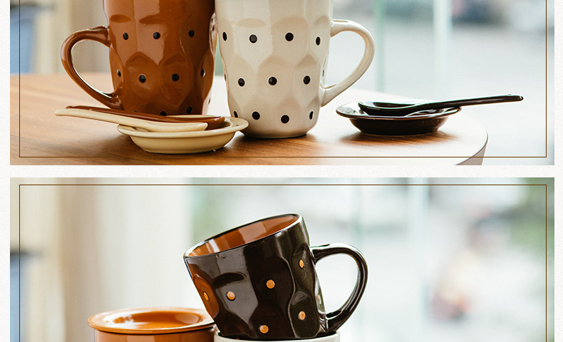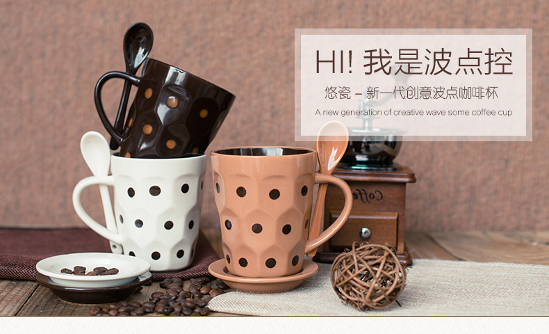 个性波点咖啡杯子陶瓷杯 创意牛奶马克杯茶水杯带盖勺
