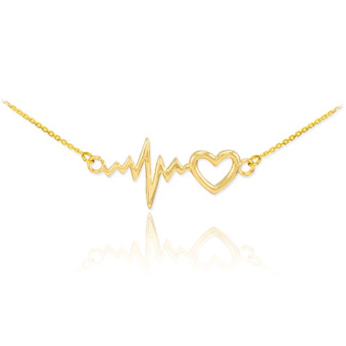 -. Binding : Jewelry -. Brand : Heart Pendants -. Department : womens -. Feature : vivacious handmade vital sign necklace showcasing an heart-shaped charm right next to a heart beat pulse on an ekg monitor suspended from either ends of its dainty rolo chain / intricately handcrafted with solid 14 karat yellow gold in perfect polished finish / comes with free special gift packaging / made in the USA yet offered at factory direct jewelry P.R.Ice / ships from the manufacturer directly to the customers -. Label : Claddagh Gold -. Manufacturer : Claddagh Gold -. Model : CM847 -. MPN : CM847 -. PartNumber : CM847 -. ProductGroup : Jewelry -. ProductTypeName : FASHIONNECKLACEBRACELETANKLET -. Publisher : Claddagh Gold -. Studio : Claddagh Gold -. Title : 14k Yellow Gold Lifeline Pulse Heartbeat Charm Open Heart Pendant Necklace