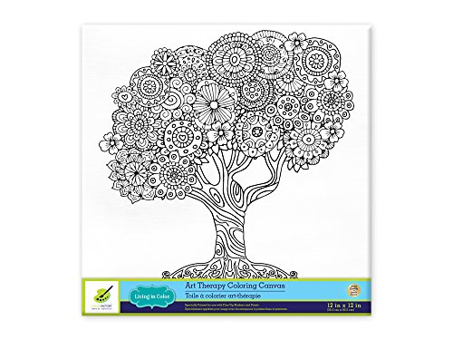 Living in Color Art Therapy Stretch Artist Canvas Primed, 12in x 12in, Color your own beautiful design on Canvas, Family Tree