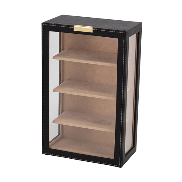 メガネタワー 収納ボックス  商品仕様:(H×W×D ) 約 300×190×110mm 合成皮革(PU)、ポリエステルベルベット、ガラス、他