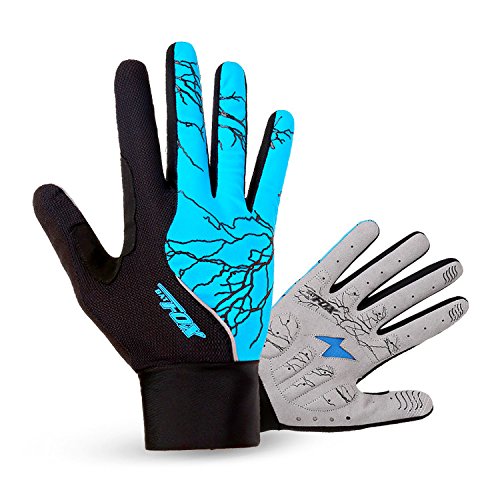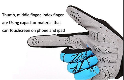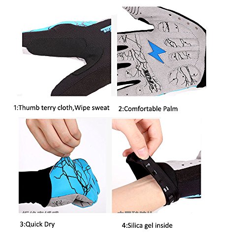 DuShow Women And Men Mountain Bike Bicycle Glove Cycling Fingerless Gloves Road Racing Gloves GEL Breathable Anti-slip Anti-shock Long Full Finger gloves(Blue,XL)