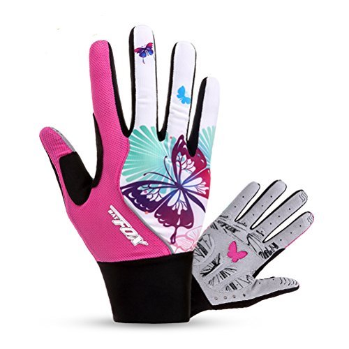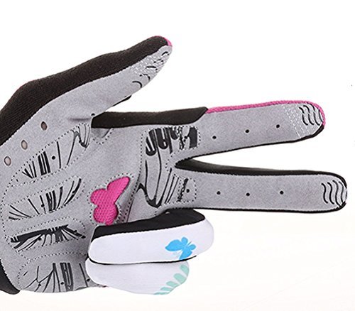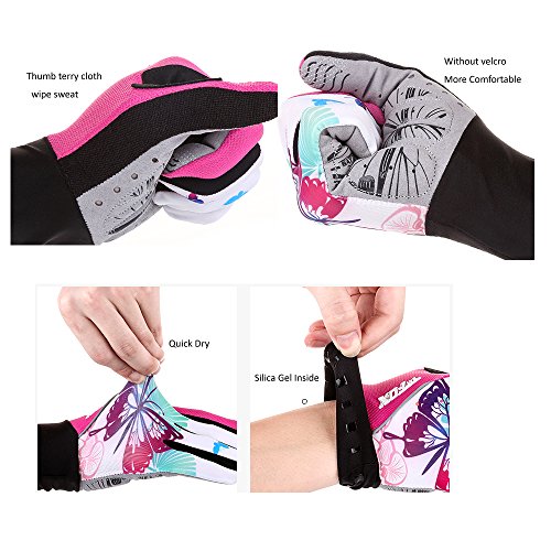 DuShow Women And Men Mountain Bike Bicycle Glove Cycling Fingerless Gloves Road Racing Gloves GEL Breathable Anti-slip Anti-shock Long Full Finger gloves(Pink,S)