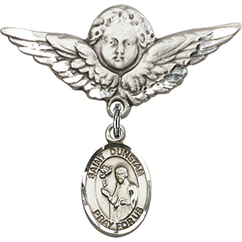 -. Title : Sterling Silver Baby Badge with St. Dunstan Charm and Angel w/Wings Badge Pin 1 1/8 X 1 1/8 inches