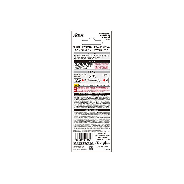 원본상품명: PS4/PS3/PS2/PS1/PS Vita/PSP用マルチ電源コド (1.5m)
