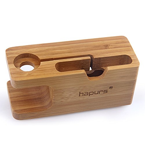 Apple Watch Stand, Hapurs iWatch Bamboo Wood Charging Dock Charge Station Stock Cradle Holder for Apple Watch Both 38mm and 42mm & iPhone 6 6 plus 5S 5