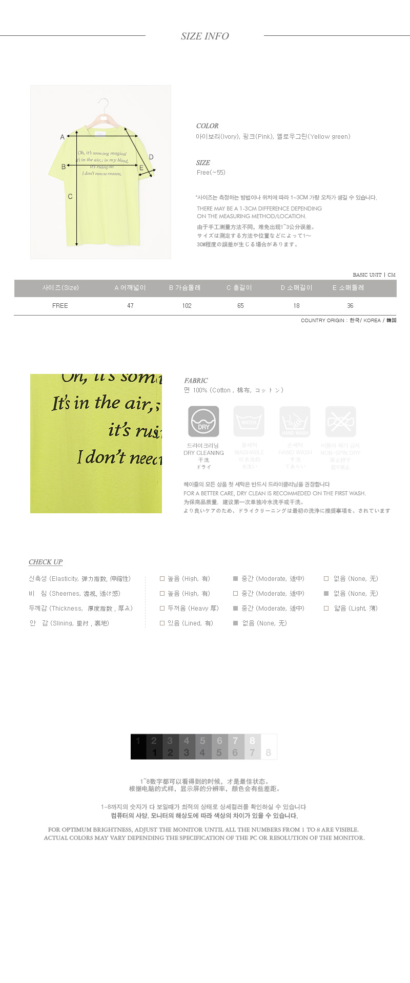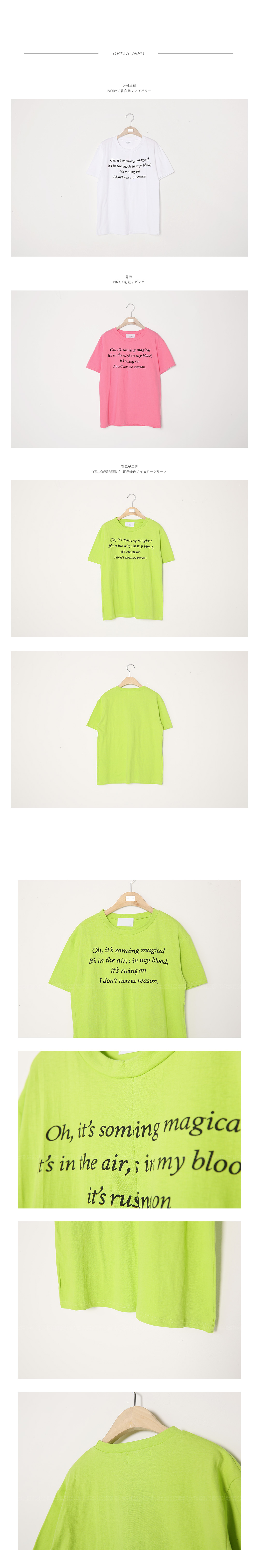 베이직한 디자인의 티셔츠 아이템에레터링 디테일이 가미되어 스타일이돋보이는 티셔츠 아이템이예요~^^군더더기없이 깔끔한 핏감과 적당한기장감으로 계절에 구애없이 다양한레이어드룩으로도 연출할 수 있어요~봄 시즌에 알맞은 화사한 컬러감으로 별다른 포인트없이 티셔츠 하나만으로도스타일리시한 분위기를 연출해드려요~활용도 높은 스타일리시한 티셔츠 아이템을 적극 추천해드려요~