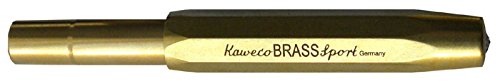 -. Feature : AL Sport brass barrel fountain pen, by Kaweco of Germany / Compact size feels just right in your hand, 4.1" long (104mm) closed, 5.2" long (132mm) open, and slightly over 1/2" in diameter (14mm). / Made from tough, solid brass / The German-made nib is stainless steel made by Bock of Heidelberg / Made in Germany