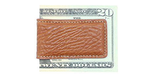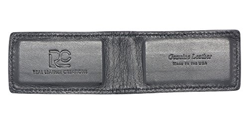 This 1.5-inch x 2.75-inch American made finely stitched Magnetic Money Clip comes in smooth Nappa Calf leather with matching colored stitching or textured Bison leather with contrast colored stitching. It is available in Black, Brown and Cognac Tan. Two extra strong magnets firmly hold paper money. The magnets are shielded on the outside of the clip to reduce the likelihood of the magnets attracting or affecting other items. A money clip is commonly used by many instead of a bifold wallet or a bill fold wallet and is a nice alternative to a front pocket slim wallet. When you buy directly from Real Leather Creations, you get factory direct pricing because you are buying directly from the American Manufacturer. Real Leather Creations has been producing high-quality leather and genuine exotic skin products for major retailers and luxury brands around the world since 1999. Thank you for your consideration and your valued business. 0