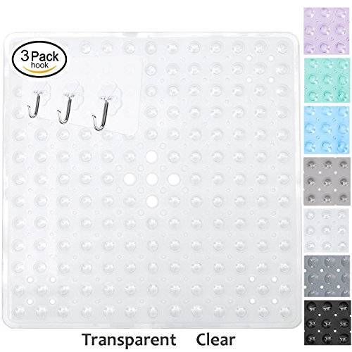 Yimobra Shower Mats Non Slip Mildew Resistant With Drain Hole 21x21 Inch Transparent Clear with Wall Hooks 3 Pack