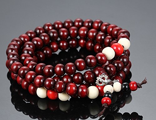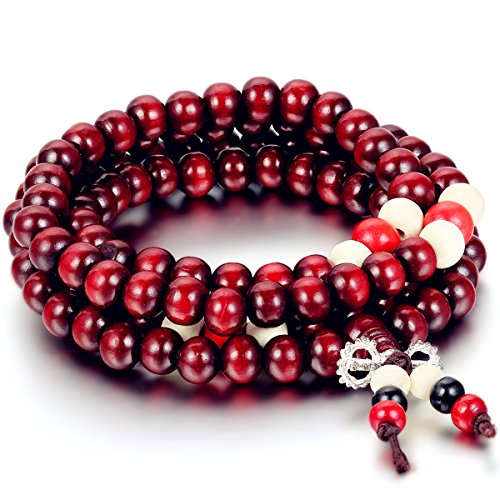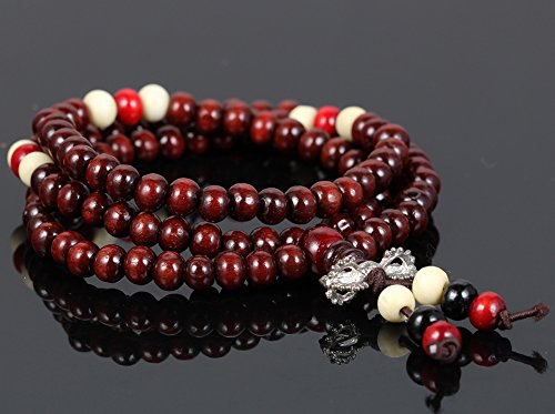 -. Title : Flongo Men's Women's 8mm 6mm Wood Tibetan Buddhist Buddha Beads Prayer Mala Bracelet Link Wrist Chinese Knot Elastic