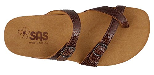 Studio : SAS Publisher : SAS Binding : Shoes Product Description Women's SAS, Shelly Slide on Sandals These slides are offer a stylish look and a customized fit! Leather upper Slide on style with two adjustable buckles to provide a customized fit, back strap is elasticized for a flexible fit Fabric linings Contoured lightweight insole is covered with a full length shock absorbing cushion and arch support for added comfrot 1 1/4 inch hand polished heel Manmade roomy outsole for added stability with Soft Step heel for extra support. Heel Height of 1.25 inches 0