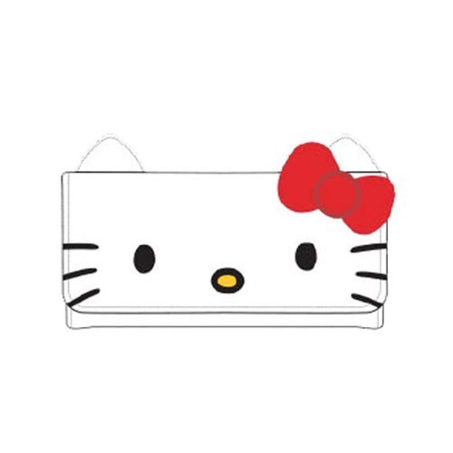 Binding : Apparel Product Description Put on a smile whenever you're carrying the Hello Kitty Big Face Flap wallet from Loungefly. This adorable wallet features a full-front embroidered Hello Kitty face with signature red bow accent on PU leather base, iconic kitty ears detail, logo plaque hardware and exterior zipped pocket in back, fully lined interior with a side compartment and eight card slots, and snap button closure on flap. 0