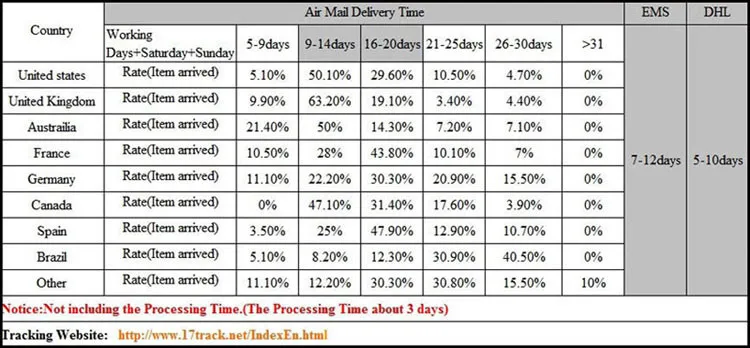 私たちを通して出荷手配シンガポール/中国のポスト航空便、必要としない場合特別、私たちはを決める無料ウェイあなたに。通常、小包に達する最も国within15-30days、しかし多分予期しない理由に遅延を出荷. ifあなたが受け取っていない商品exced 30日、私達と連絡。fortherより、私たちも供給ems、epackためあなたを選択。