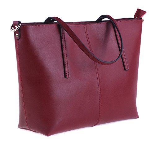 ilishop Women's Large Leather Shoulder Bag Work Tote with Zippers