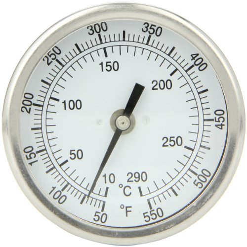 PIC Gauge B3B6-RR Stainless Steel Bimetal Thermometer with Back Connection, 3" Dial Size, 6" Stem Length, 50/550° F and 50/550° C Temperature Range
