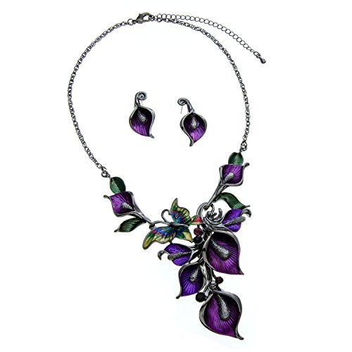 -. Binding : Jewelry -. Brand : PammyJ -. Department : womens -. Feature : Necklace measures 16 inches long with extension and has a 3 1/2 inch drop / Earrings drop 1 1/4 inch / Comes in a gift box / Imported -. Model : 15663 -. MPN : 15663 -. PartNumber : 15663 -. ProductGroup : Jewelry -. ProductTypeName : FASHIONOTHER -. Title : Purple Metal and Butterfly Crystal Statement Necklace and Earrings Set