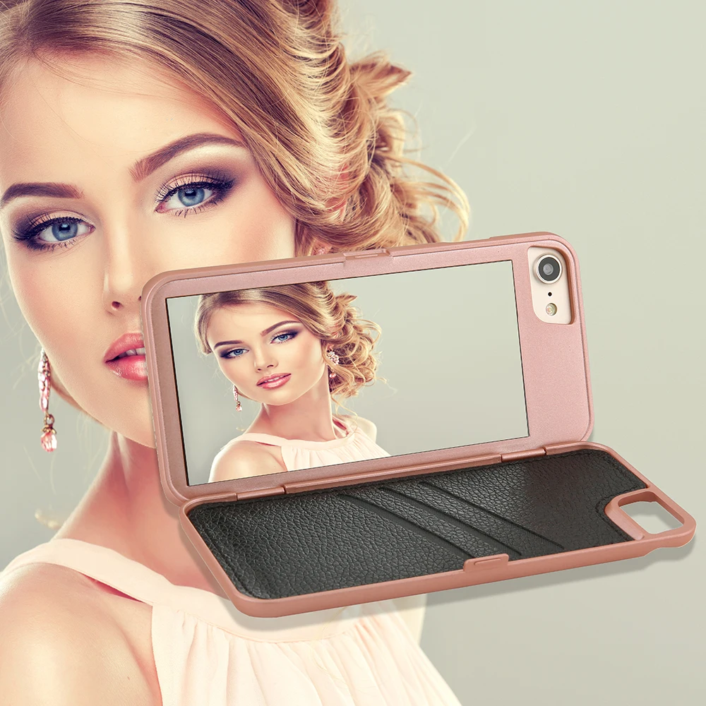 Style 4:Multifunctional Wallet PU Leather Credit Card Holder Flip Mirror Case