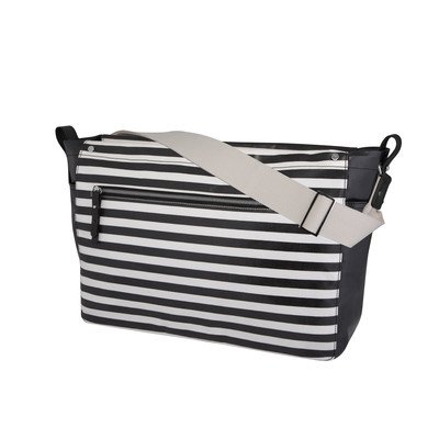 Insulated messenger-style diaper bag with DwellStudio's chic Mini Stripe design