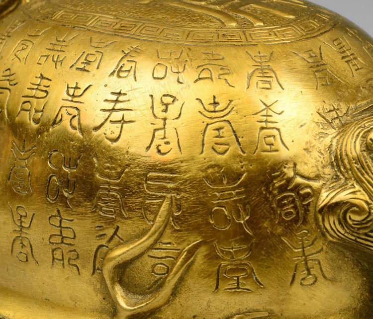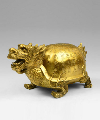 3.元宝龙龟:一般背负元宝或脚踏元宝钱币,强化了招财旺财的风水功用。