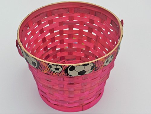 Pink Weave Easter/Halloween Basket with soccerballs on rim
