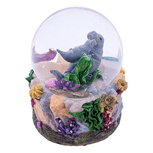 Manatees Playing in Ocean 100MM Music Water Globe Plays Tune Somewhere In Time