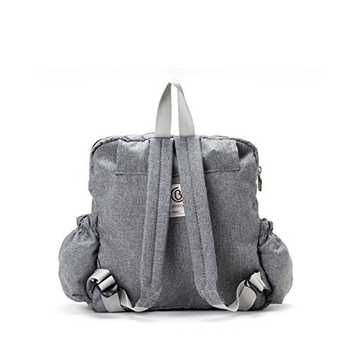 Beautiful, streamlined design - choose from 7 design options -Easy-to-clean, water-repellent and durable -Machine washable -Outside zippered compartment -Comfort fit padded shoulder straps -Spacious compartments to fit extra clothing, diapers etc. -Inside hook for pacifiers, keys etc -Two outside pockets for bottles Keeping it comfortable: -Padded shoulder straps -Easy to carry and hang - wear on back, carry by hand or hang on your carriage Dimensions: 30x32x7 cm.