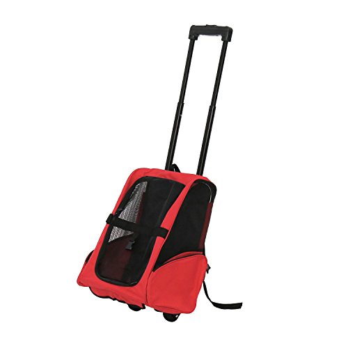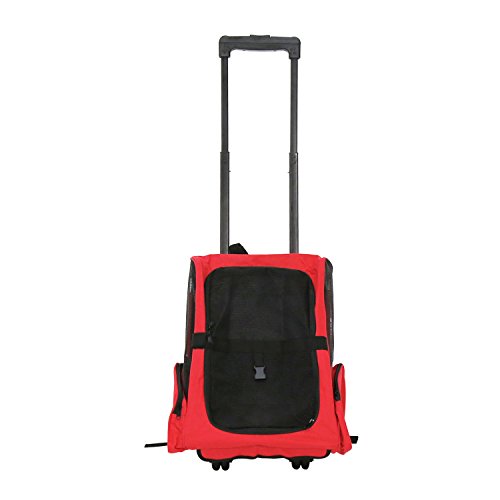 -. Binding : Misc. -. Brand : Peachtree Audio -. Color : Red,Black -. EAN : 7644028259038 -. Feature : It is able to backpack, drag and adjust telescoping handle / Mesh on 3 sides for pets viewing, which is comfortable & Breathable / The zipper and two sides storage bag designs for more convenient using / Multi-stage telescopic carrier handle is 40" with handle extended. Handle Length: 21.5" to 40" / A latch inside to hook to the animal's collar to keep them from abruptly jumping out or otherwise escaping when you open the backpack. -. Label : Guangbo -. Manufacturer : Guangbo -. PackageQuantity : 1 -. ProductGroup : Pet Products -. ProductTypeName : PET_SUPPLIES -. Publisher : Guangbo -. Studio : Guangbo -. Title : Peach Tree Pet Rolling Carrier Backpack Airline Approved Dog Cat Wheel Around Lage Bag, Red