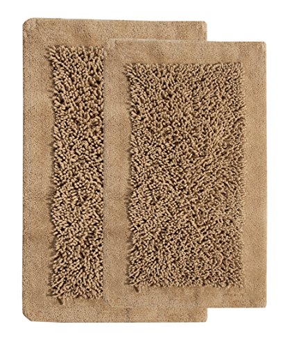 Saffron Fabs 2 Piece Bath Rug Set, Cotton and Chenille, Size 34x21 Inch and 36x24 Inch, Latex Spray Non-Skid Backing, Beige, Long Noodle Loops Pattern, 200 GSF Wt, Spot Clean, Rectangular Shape
