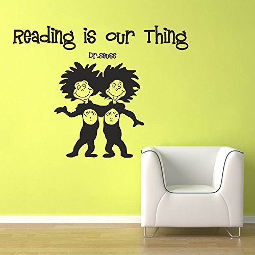 -. Title : Wall Decal Decor Wall Decal Quote Dr Seuss - Reading is our thing - Reading Room Kids Room Baby Nursery Wall Art Sticker(navy blue, 17"h x22"w)