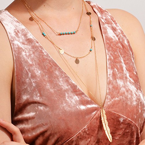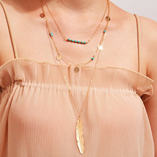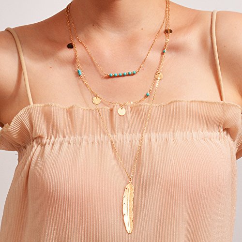 FXmimior Women 3 Tiers Necklace Vintage Bohe Feather Pendant Choker Sexy Rock Handmade Layered Bar Party Wedding Necklace Jewelry For Women (gold)