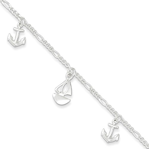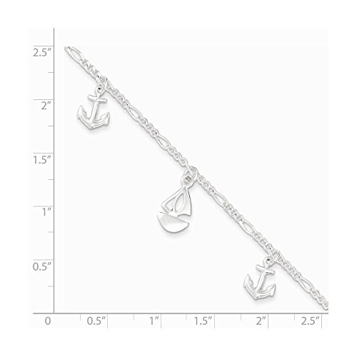 Material Purity: 925Finish: PolishedChain Length: 9Chain Width: 2Charm/Element Length: 10Charm/Element Width: 8Clasp/Connector: Lobster (Fancy)Extender Length: 1Feature(1): AdjustableMaterial: Sterling SilverJewelry Type: AnkletsAnklet Type: ThemedMaterial Color: WhitePolishedSterling silverFancy lobster1" extenderFeature