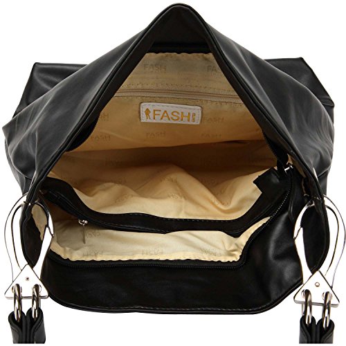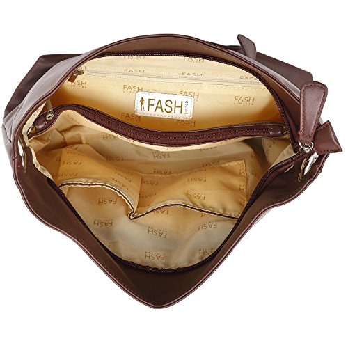 -. Brand : FASH Limited -. Department : womens -. Feature : High Quality Man-made Leather & Fabric Lined Interior / Single shoulder strap with silver tone hardware / Features an additional zippered pocket that separates the main compartment into two halves / Made in China / Approximate Dimensions: Exterior - 11" L X 11" W X 5.1" H; Handle Drop: 8.2" -. PackageQuantity : 1 -. ProductGroup : Shoes -. ProductTypeName : HANDBAG -. Size : One Size -. Title : FASH Top Handle Soft Hobo Shopper Handbag