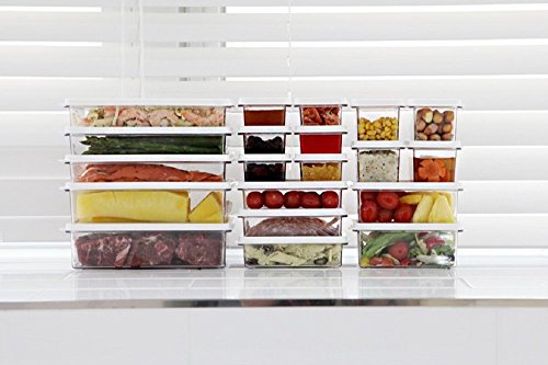 Kitchen Refrigerator Organizer, Fridge and Freezer Storage, Food Containers with Lids S1(6P)+S2(4P)+M1(2P)+M2(2P)+L1(3P)+L2(2P), Set of 20, Clear