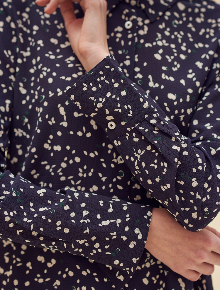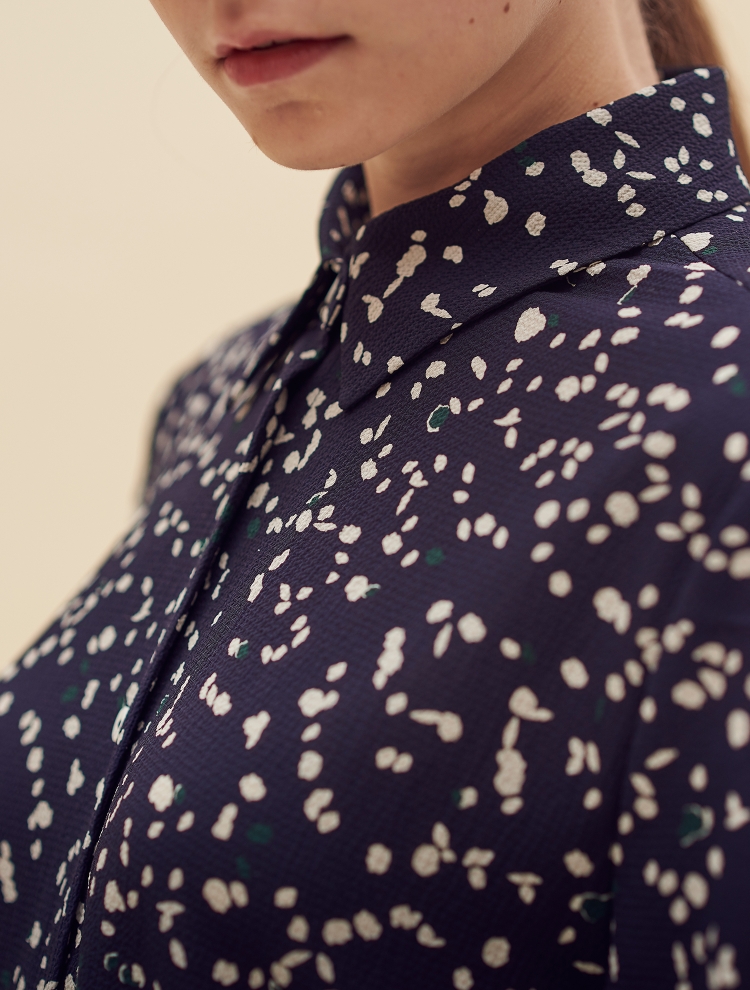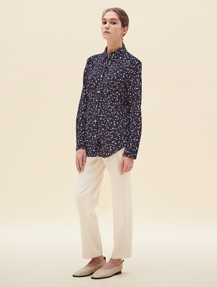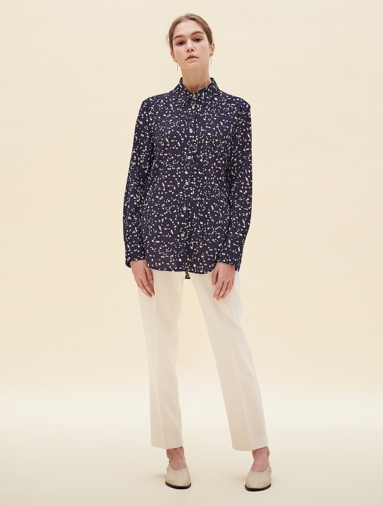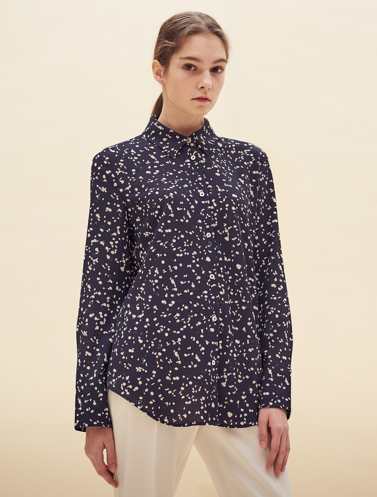 - 일자로 뚝 떨어지는 실루엣으로 여성스럽고 편하게 코디할 수 있는 블라우스입니다.