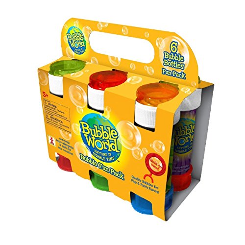 WHATS INCLUDED: 6-pack of bubble bottles (each bottle contains 2.03 fl. oz. of bubble solution) with maze cap game and built-in, mess-free wand.