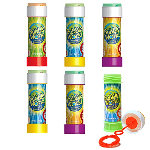 Bubble World Fun Bubble Bottles (6 Pack) Bubbles for Kids - Non-Toxic Bubbles with Built-In Wand for Mess-Free Play!