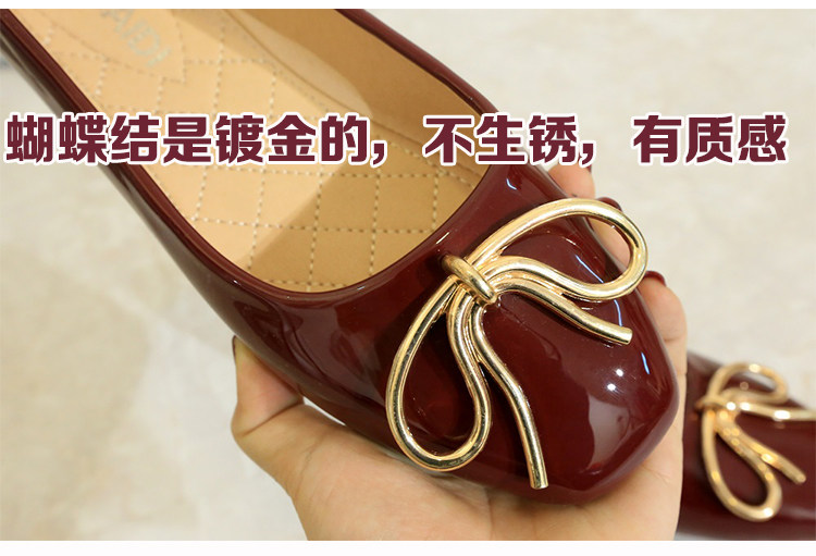 - 流行元素: 浅口 蝴蝶结 金属装饰