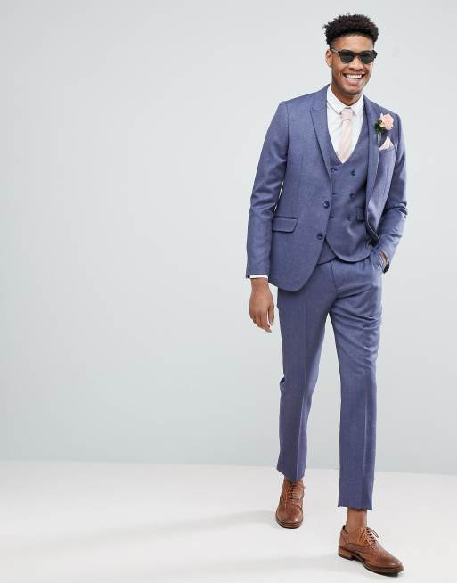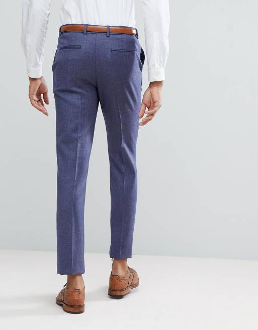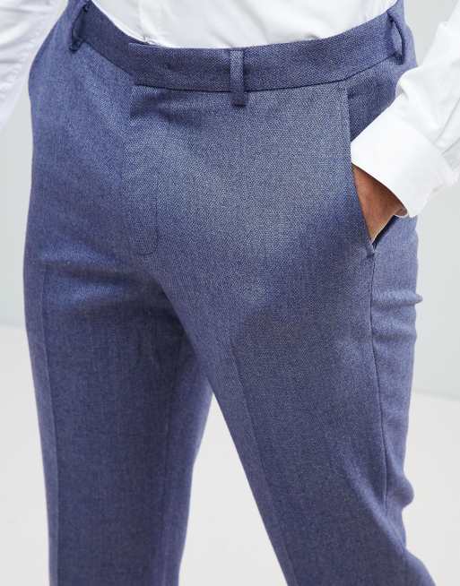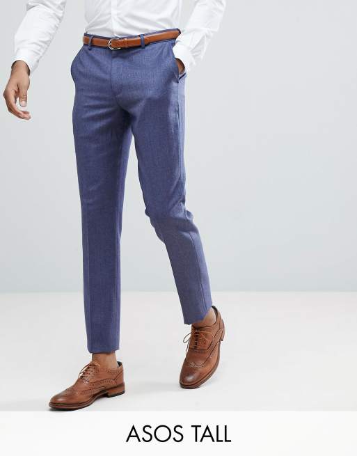 ASOS TALL WEDDING Slim Suit Pants In Deep Blue 100% Merino Wool