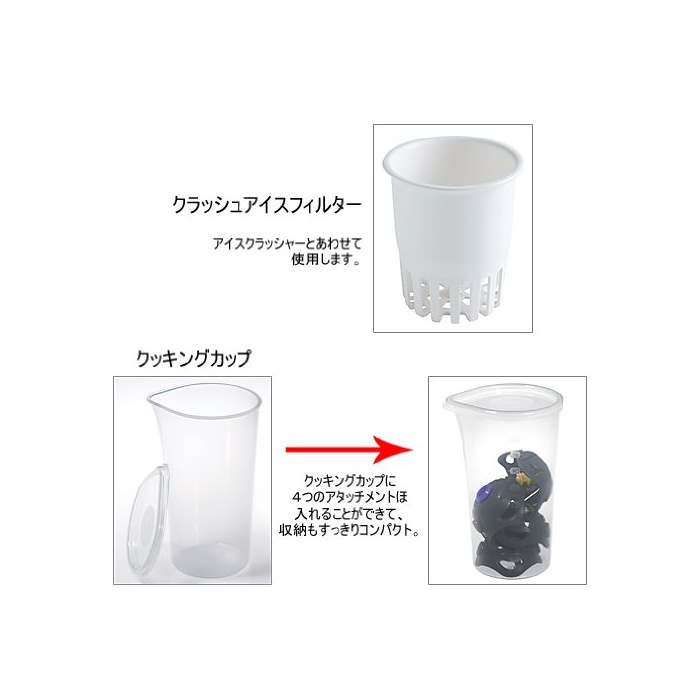 부속품:오리지날 레시피(요리처리법) 북(30레시피(요리처리법))고, 뚜껑 부착 쿠킹 컵 고, 크래쉬 필터