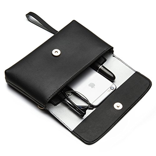 -. Brand : SharPlus -. Department : womens -. Feature : Versatility to carry as cute wristlet pouch or chic shoulder bag, which is perfectly sized and organized to keep your essentials close in your daily outfits / Environmental-friendly faux leather & gold tone hardware,with synthetic leather lining / 3 card slots inside & 1 back open slip pocket for your cellphone and items / 9"W x 5"H x 1.5"D,zipper closure with fashion magnetic snap flap design / Adjustable shoulder long strap with 25" drop & detachable wristlet strap with 7.8" drop -. ProductGroup : Shoes -. ProductTypeName : HANDBAG -. Size : Small -. Title : SharPlus PU Leather Flap Cross-Body Purse Wristlet Clutch Handbag,With Gold-Tone Clasp