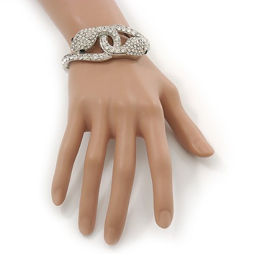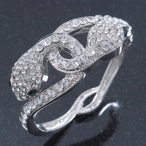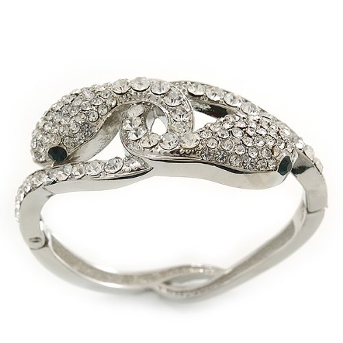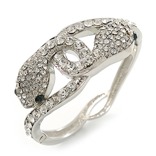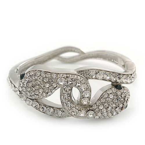 Avalaya Stunning Swarovski Crystal Intertwined Snake Hinged팔찌 팔찌inrhodium 도금17cm장