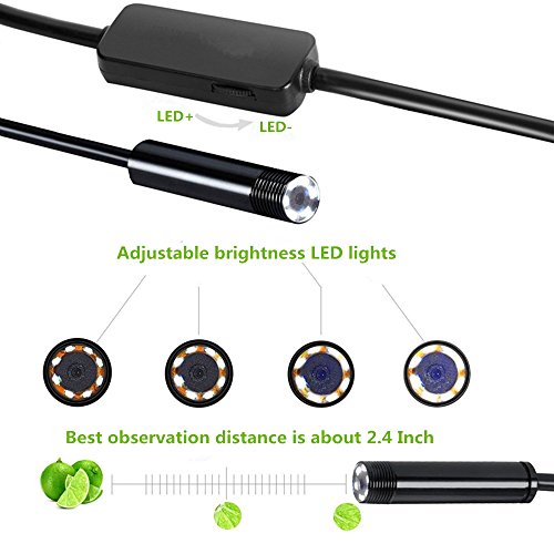 ◆IP68 Waterproof and 2 Year Warranty Guaranteed: Featuring IP68 waterproof and 8mm diameter camera, 8 adjustable LED light on the camera, this endoscope is suitable for various types of environment, for example, low-light or dark area; 2 Year Warranty Guaranteed