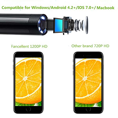 Fancellent Wireless Endoscope Wifi Borescope 1200P HD Inspection Camera With 2.0 Megapixels HD Snake Camera For Iphone IOS and Android smartphone, Tablet, Macbook, Computer-11.48ft
