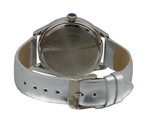 -. Title : Womens Wrist Watch Silver Tone Leather Band Round Face Crystal Bezel Jade LeBaum - JB202868G