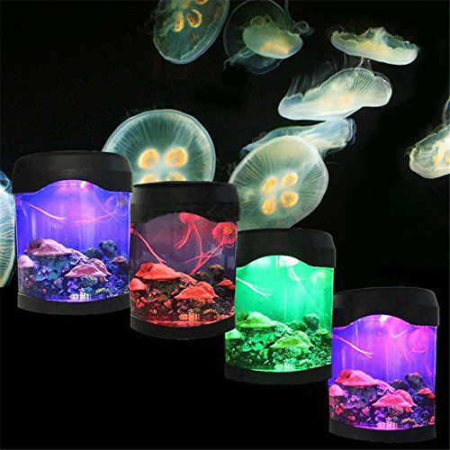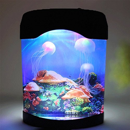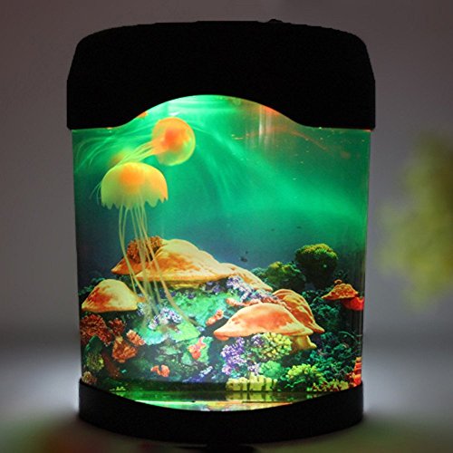 Jellyfish Aquarium mood night light: This desktop tank holds 3 jellyfish which "swim" around the tank, can be powered by battery & AC 110V (Adaptor is included). LED inside, It can change the colors automatically or control by the key, when it is on. it can be a decoration that to add color for your room or office