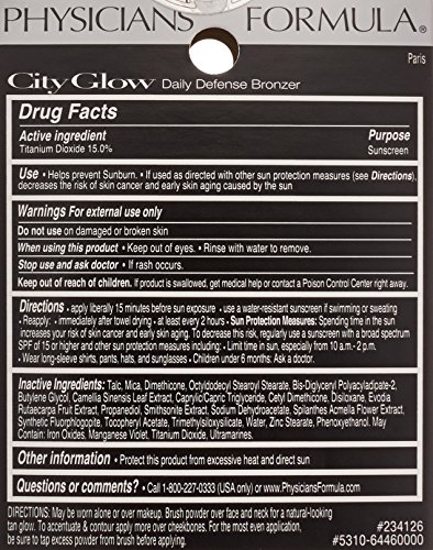 -. Title : Physicians Formula City Glow Daily Defense Bronzer SPF 30, Paris, 0.38 Ounce