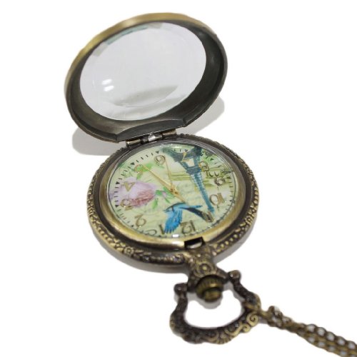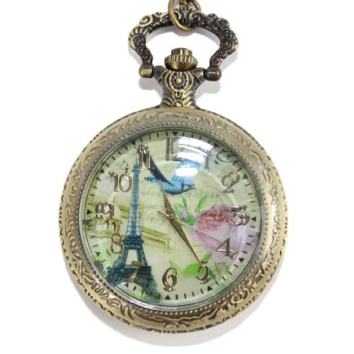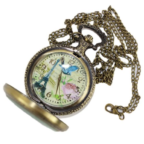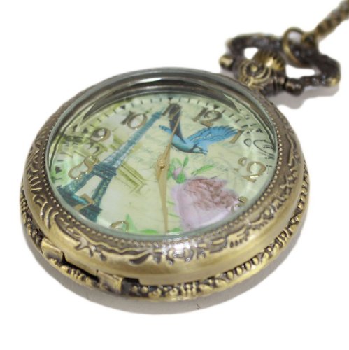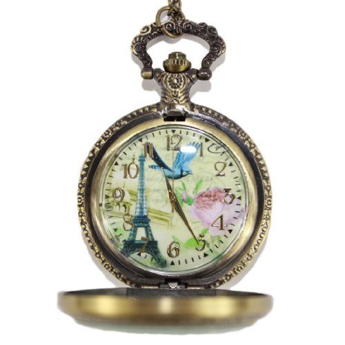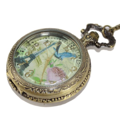 -. Title : Retro French Tower Pocket Watch Rose and Bird Women's Watch