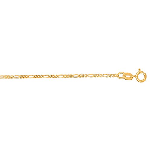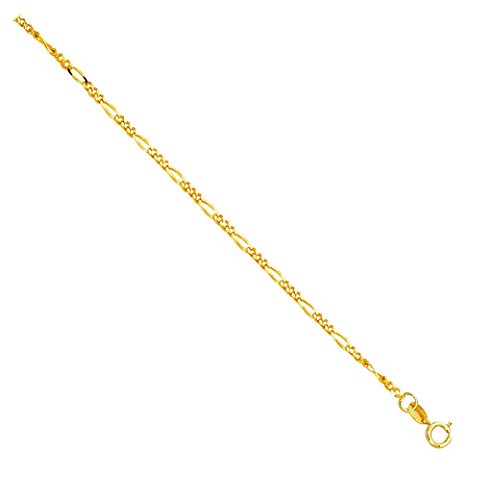 -. Feature : 14K Real Yellow Gold Figaro Chain Ankle Bracelet Anklet 10" inches 1.9mm / Beautifully crafted and well designed / Size: 10 inches long and about 1.9mm wide; Weighs about 1.7 grams / SP.R.Ing ring clasp for comfort and secuirty when worn / PICTURES ENLARGED TO SHOW DETAILS. SEE LISTING DETAILS FOR SIZE.