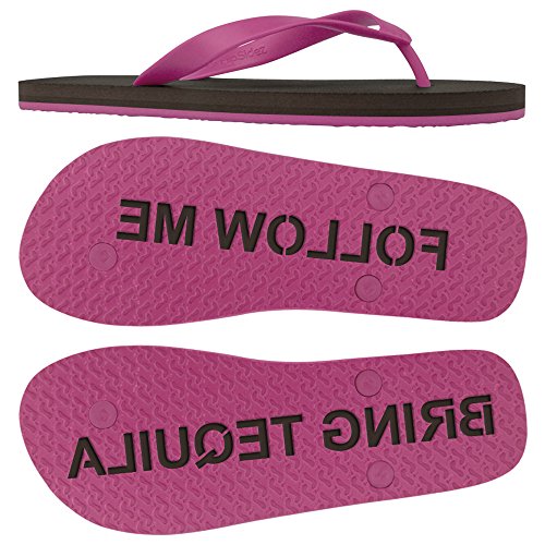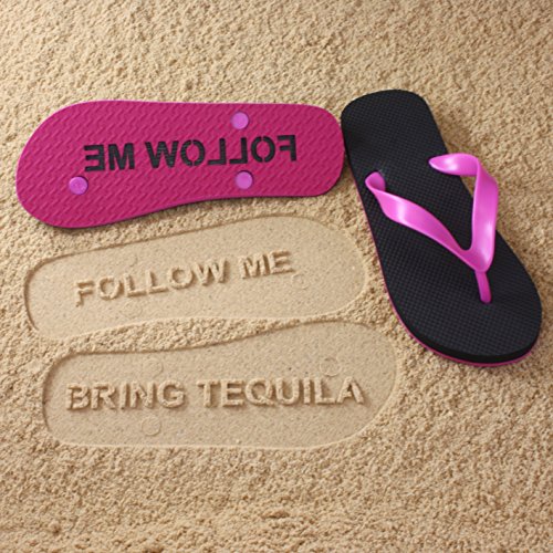 Binding : Apparel Product Description These unique flip flops can imprint FOLLOW ME BRING TEQUILA in sand with each step. Made to order in the USA from durable and elastic Rubber/EVA foam. Please note that this product is custom made to order in the size and colors that you request. Returns are not accepted except in the event of the product being made incorrectly. 0